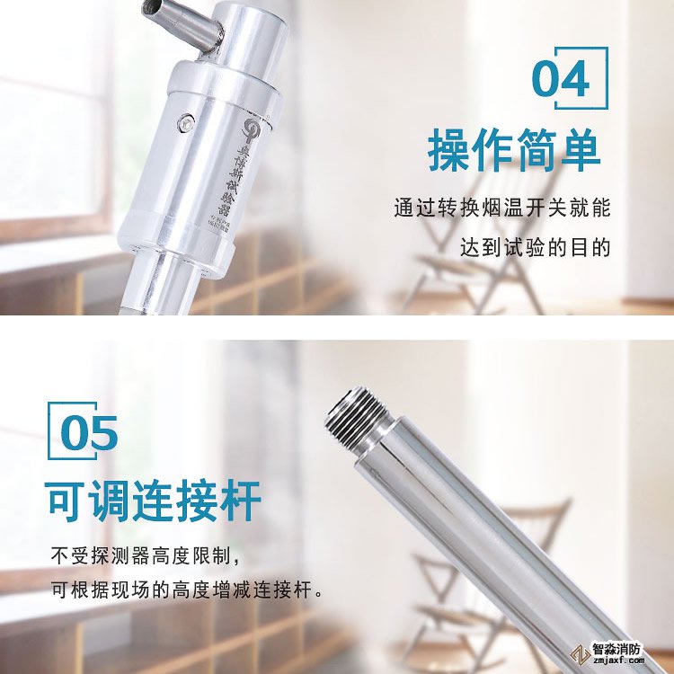 一體式二合一煙溫試驗器,二合一火災探測器功能試驗器,感煙感溫二合一探測器功能試驗器智淼君安消防在優化感煙探測器功能試驗器及感溫探測器功能試驗器的基礎上開發設計的新一代煙溫試驗器,繼續保持特有的不銹鋼設計,鋁合金外包裝,攜帶方便,組裝簡單、操作靈活等特點。