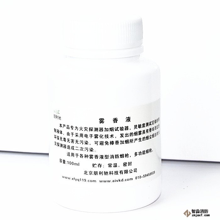 霧香液的主要成份:蒸餾水、甘油、香精等。本產(chǎn)品發(fā)出的煙霧有各種香味且綠色環(huán)保,無(wú)毒無(wú)害。根據(jù)火災(zāi)探測(cè)器倒掛在頂棚上的狀況,為避免加煙后煙霧長(zhǎng)時(shí)間滯留在火災(zāi)探測(cè)器迷宮內(nèi),特制霧香液霧化成煙后的比重大于空氣比重,加煙試驗(yàn)后短時(shí)間內(nèi)能在迷宮內(nèi)快速消失,有利于提高試驗(yàn)工作效率。